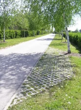 Az útburkolat nem szívja meg magát vízzel, ezért nyáron nem veszi el a nedvességet a zöld növényektől, így a füvesített felületek valóban zöldek maradnak, télen nem fagy át és nem töredezik össze. A könnyű megmunkálhatóság lehetővé teszi igényes alakzatok pontos kialakítását például csatorna-akna, vízelzáró vagy megvilágító oszlop körül.